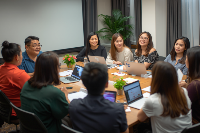 フィリピン人は明るく親しみやすい性格で知られ、職場の雰囲気はオープンでフラットな傾向があります。上司ともカジュアルにコミュニケーションが取れる環境が多く、日本の縦社会に比べ馴染みやすいと感じる日本人も多くいます。 (参考: okuridashicafe.com)